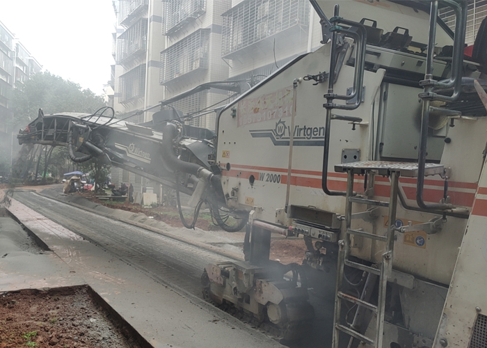 路面銑刨 :通俗說就是把損壞的舊路面刮一層,再鋪新面層。一般為的是消除舊路面破壞松散部分,或?yàn)榱诵屡f面的結(jié)合良好。還有,為了提高路